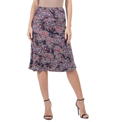 Our Grey Paisley Elastic Waist Knee Length Skirt, where comfort meets style with a touch of elegance. Crafted with the finest attention to detail, this skirt effortlessly combines a classic knee length silhouette with a contemporary twist. The mesmerizing paisley pattern in shades of grey adds a sophisticated flair, making it a versatile piece for any occasion. The elastic waistband ensures a snug fit and all day comfort, while the high quality fabric drapes gracefully for a flattering look. Whether you are strolling along the streets or attending a social gathering, this skirt is bound to turn heads and make you feel effortlessly chic