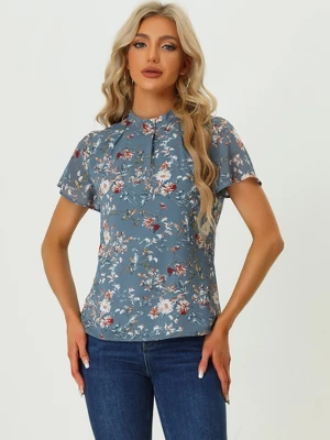 - This short-sleeved top features a floral design for a fresh, age-reducing look
