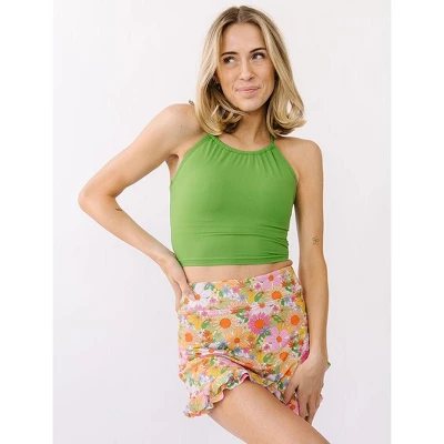 The cinched neckline on this crop top is a standout feature, offering both coverage and adjustability for a customized fit. Its height ensures you get the coverage you desire, while the adjustability lets you tailor it to your preference. Additionally, this crop top includes a built-in shelf bra and sewn-in pads, providing excellent support and comfort. With these features, you can feel confident and comfortable in this versatile and stylish piece, whether you’re at the beach, by the pool, or anywhere in between.