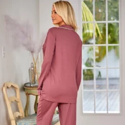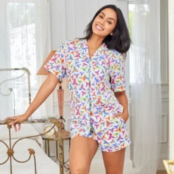 Women’s Beautifully Soft Long Sleeve Notch Collar Top And Shorts Pajama Set – Stars Aboveâ„¢