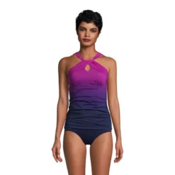 Lands’ End Women’s Chlorine Resistant High Neck To One Shoulder Multi Way Tankini Swimsuit Top