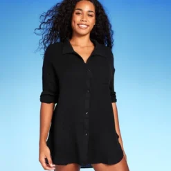 Women’s Long Sleeve Cover Up Shirtdress – Shade & Shoreâ„¢ Black