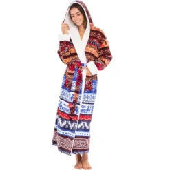 Women’s Warm Winter Robe, Plush Fleece Full Length Long Hooded Bathrobe