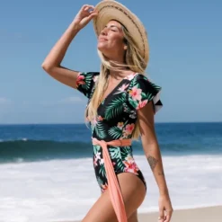 Women’s V Neck Ruffle One Piece Swimsuit Tropical Floral Bathing Suit – Cupshe