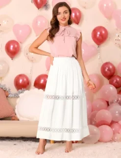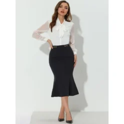 Allegra K Women’s Mock Neck Blouse Ruffle Work Office Cotton Pleated Button Up Shirt