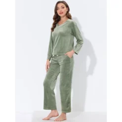Cheibear Womens Velvet Sleepwear Tracksuits With Pockets V-Neck Lounge Sweatsuit Pajama Sets