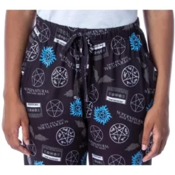 Supernatural Womens’ Join The Hunt Anti-Possession Castiel Logos Pajama Pants Black