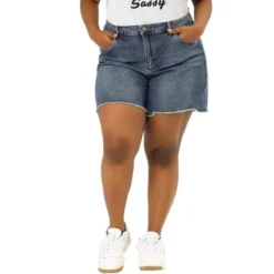 Agnes Orinda Women’s Plus Size Jean Denim Short Sleeve Chest Pocket Button Down Shirt
