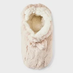 Women’s Fluffy Textured Faux Fur Booties With Poms And Grippers