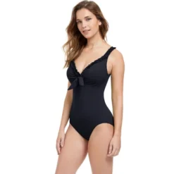Anne Cole – Women’s Flutter Sleeve Zip Up Rash Guard One Piece Swimsuit Black