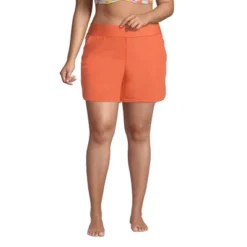Lands’ End Women’s 5″ Quick Dry Elastic Waist Board Shorts Swim Cover-up Shorts With Panty