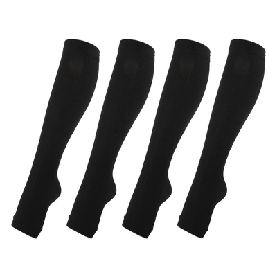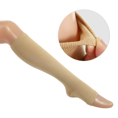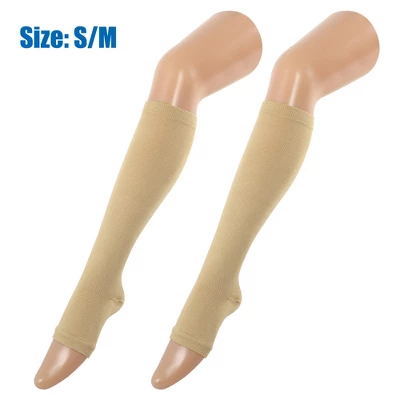 Item Function: 1. Compression design from your toe to legs, closely fits your legs without slipping or shaking, keeping you in a good performance. 2. Helps you with relaxation and improvement in your legs, ankles, and feet. 3. Provide moderate pressure in a comfortable range that is ideal for everyday wear. The socks allow for a full range of motion and joint flexibility. 4. Compression socks create the highest support pressure at the ankle and gradually decrease along the legs. 5. Kindly Notice: Wear it for 4-6 hours every time, if any discomforts happen, please take them off. Wash it with the water at a temperature below 40 degrees, do not use the bleaching agent. Keep it away from the high-temperature environment and the keen-edged objects. Do not use it when there are hurt or rash, people with heart diseases, or skin diseases. Pregnant women are not suggested to use this product. Put in a shady and dry place, and keep away from the sunshine. Specification: Brand: Unique Bargains, Color: Beige, Material: Nylon, Size: S/M, Gender: Unisex, Package Included: 2 Pair Compression Sleeve. Optional Size:Size S/M: Fits for the ankle circumference: 16-21cm/ 6.29″-8.27″; Fits for the calf circumference: 26-34cm/ 10.23″-13.38″.Size L/XL: Fits for the ankle circumference: 20-25cm/ 7.87″-9.84″; Fits for the calf circumference: 32-37cm/ 12.6″-14.56″.Size XXL: Fits for the ankle circumference: 23-28cm/ 9.05″-11.02″; Fits for the calf circumference: 36-40cm/ 14.17″-15.75″.