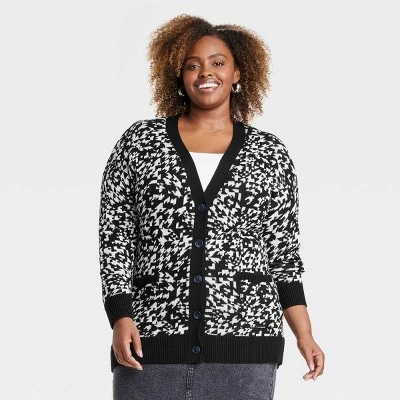 Layer up your look in classic, cozy style with this Houndstooth Button-Front Cardigan from Ava & Viv™. Made from a midweight cotton blend, this long-sleeve cardigan features a V-neckline and a button-down front for versatile styling. It’s adorned with a timeless houndstooth pattern in black and white, trimmed with black-ribbed edges for a neat finish. Front patch pockets complete the design with functional flair. Toss it over jeans, dresses or skirts to add a warm layer on cooler days and evenings.