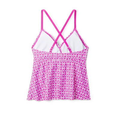 A practical compromise between a one-piece and a bikini, the X-Back Tankini Top from Kona Sol™ is a swimwear piece you’ll love slipping on again and again. Full torso coverage and a looser fit makes this tankini a versatile pick to mix and match with a variety of swim bottoms. Plus, the tankini top has a V-neckline and removable cups, while the adjustable straps crisscross in back for sporty style.