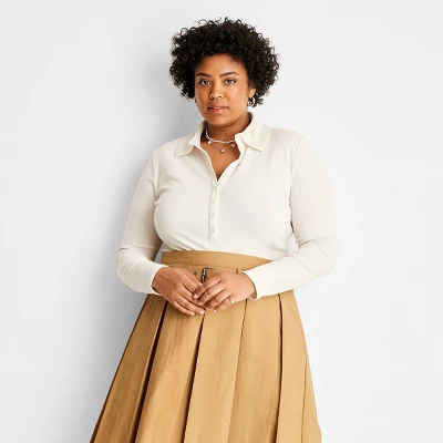 Refresh your everyday basics with the Long-Sleeve Henley Collared Button-Front Bodysuit from Future Collective™ with Reese Blutstein. This long-sleeve bodysuit is made from a lightweight cotton fabric with a touch of spandex for a comfortable fit that moves with you. The solid color allows for plenty of styling options, while a collared henley neckline keeps things classically chic.