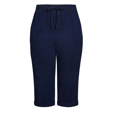Master effortless styling with the Cotton Roll Up Capri! Versatile and relaxed, this pair is finished with a supportive wide elastic waistband and a trendy button tab rolled cuff. Keep it casual with a pair of sneakers. Everyday style made easy, Avenue is your one-stop-shop for plus size fashion. Inspired by a comfort-meets-style approach, this effortless brand marries relaxed silhouettes with dynamic prints and colors. From casual daywear to staple denim, Avenue has simplified your everyday dressing. Take your day-to-day look to new heights with comfortable basics or eye-catchingly printed pieces, all designed to keep you comfortable while flaunting your curves to perfection. Available in sizes 14 – 40.